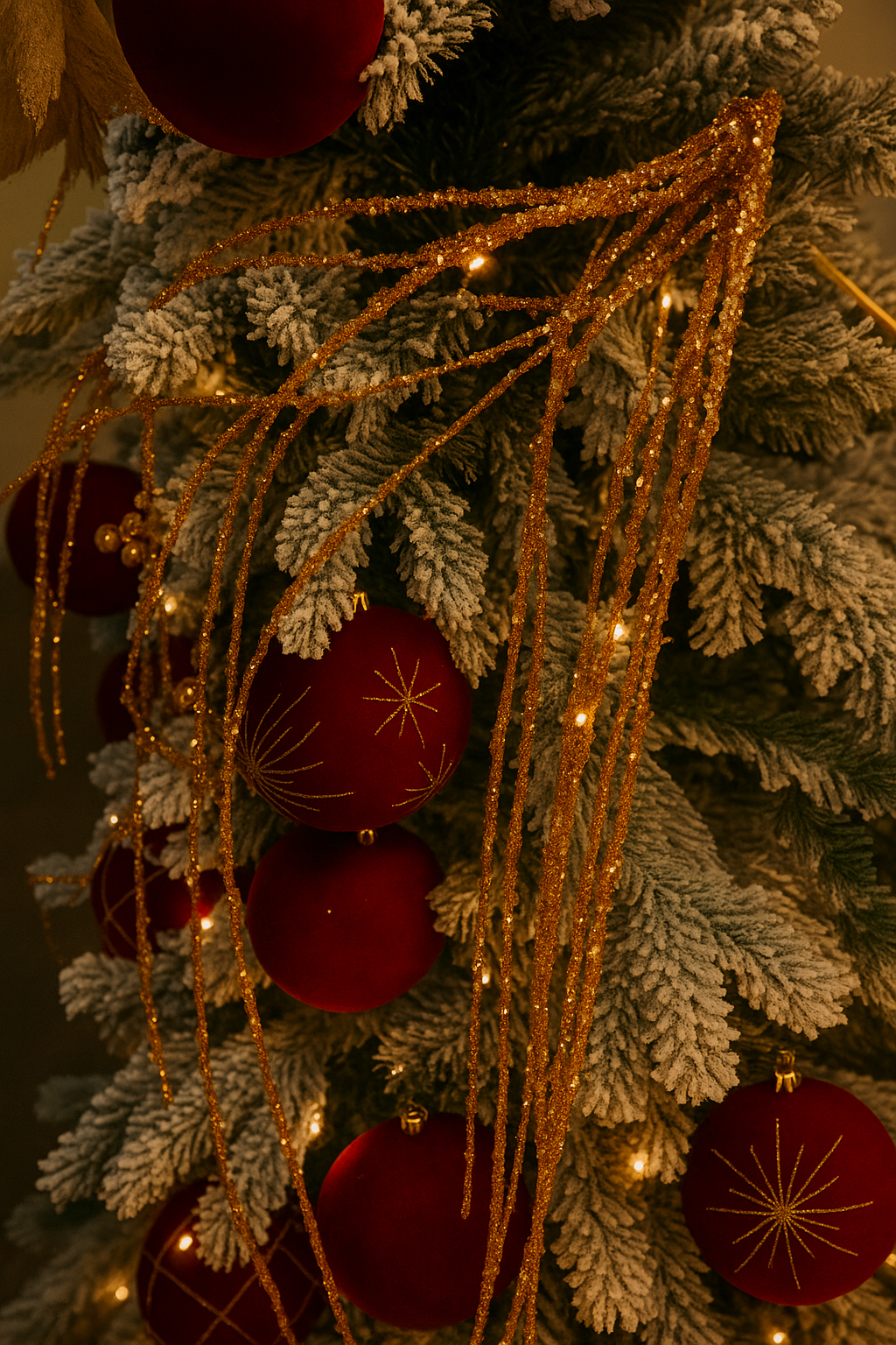 Cascading strands of golden glitter that dangle gracefully, adding movement and sparkle.