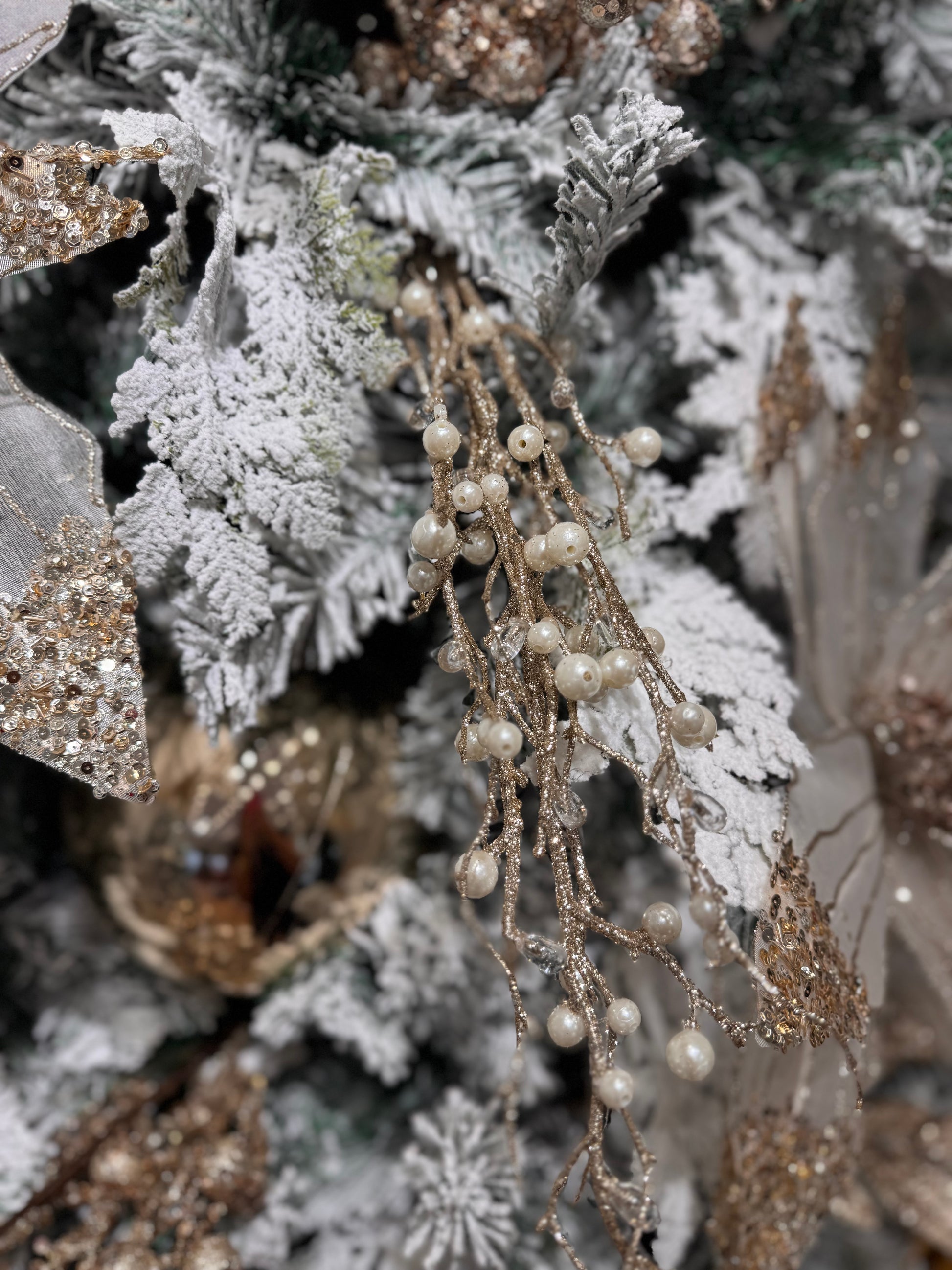 Branches tipped with pear-like berries dusted in glitter for a frosty, elegant finish.