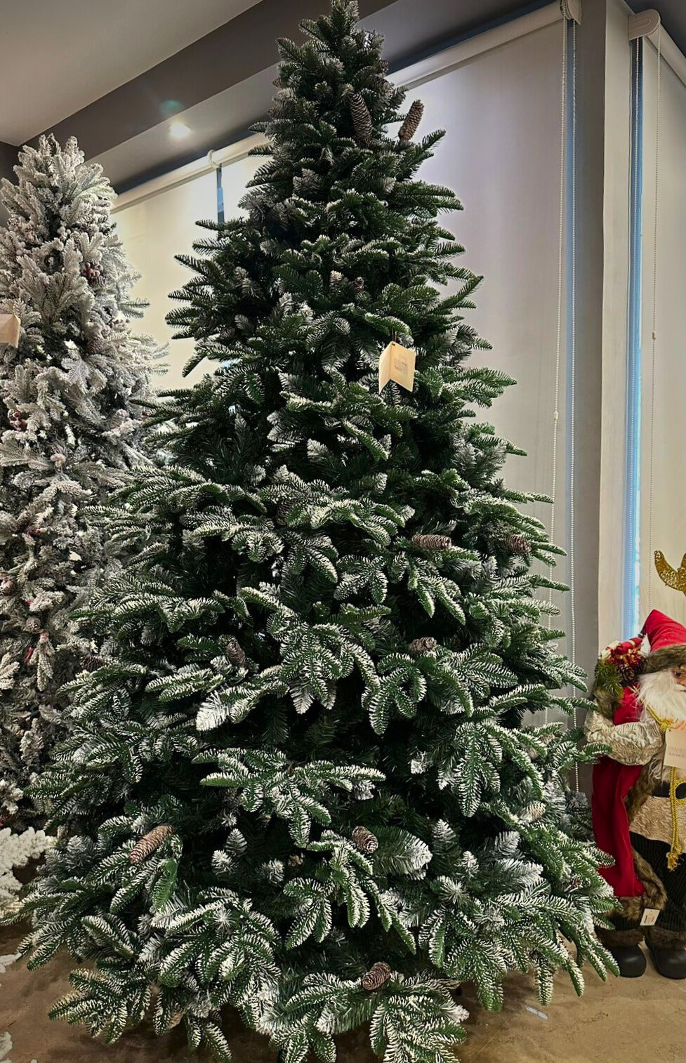 A lush, realistic pine with soft green needles kissed with delicate frost and dotted with natural-looking pinecones. Its full shape and subtle snowy tips bring the charm of an alpine forest into your home — the perfect canvas for magical Christmas décor.